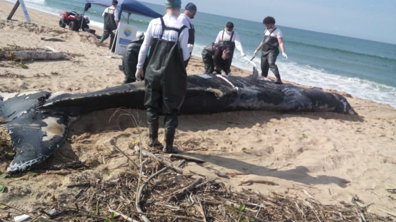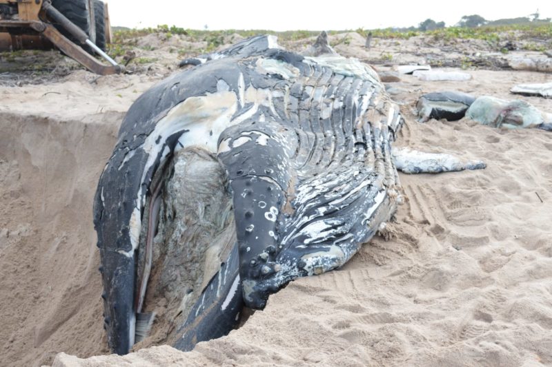Na ocasião, a necropsia constatou que a jubarte apresentava algumas escoriações, mas nada que evidenciou emalhe (presa em redes).