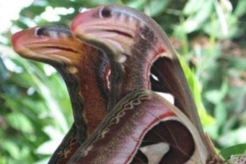 A mariposa Atlas chama a atenção pela aparência, que remete a uma cobra de duas cabeças, e é encontrada nas florestas tropicais da Ásia – Foto: Reprodução/Internet/@CarolMaps