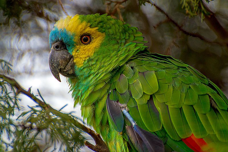 O papagaio-verdadeiro é nativo do Sudeste do Brasil e a população que vive em Santa Catarina é resultado de solturas inadequadas após a captura de animais traficados ou de escape de cativeiro. A posse é permitida somente para animais registrados no Ibama. – Foto: Jair Moreira/Wikimedia