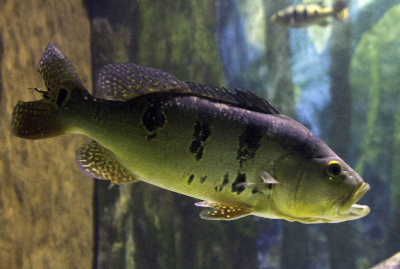 O tucunaré é um peixe muito conhecido, nativo do Amazonas, e também está na lista de espécies exóticas invasoras. O motivo é que ele é um grande predador de outros peixes e pode acabar desequilibrando a população de outras espécies e gerar impactos negativos. – Foto: Fábio Manfredini/Flickr