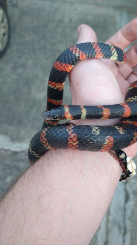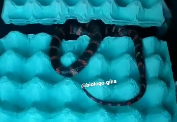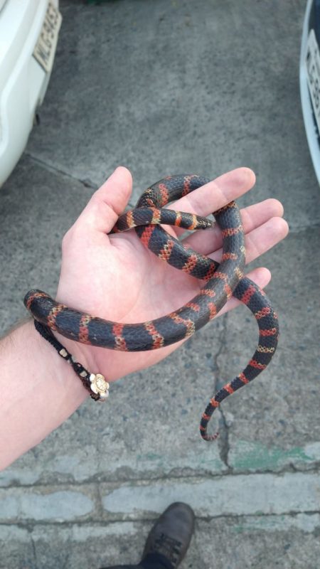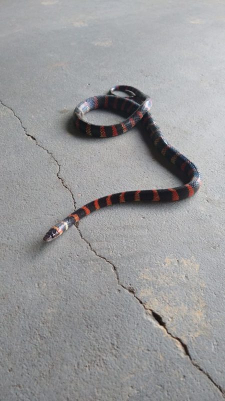 Os biólogos do Fujama afirmam que as diferenças entre as cobras corais e as falsas-corais não são tão fáceis de identificar, por isso, é importante que as pessoas não mexam ou tentem capturá-las sem auxílio de um profissional. – Foto: Christian Raboch/Divulgação ND