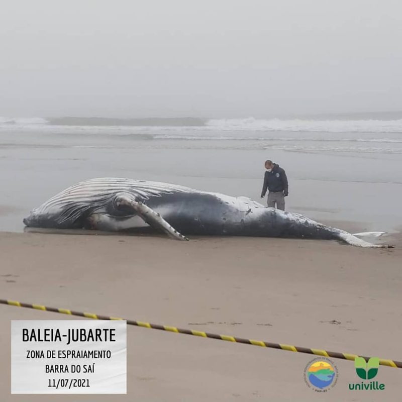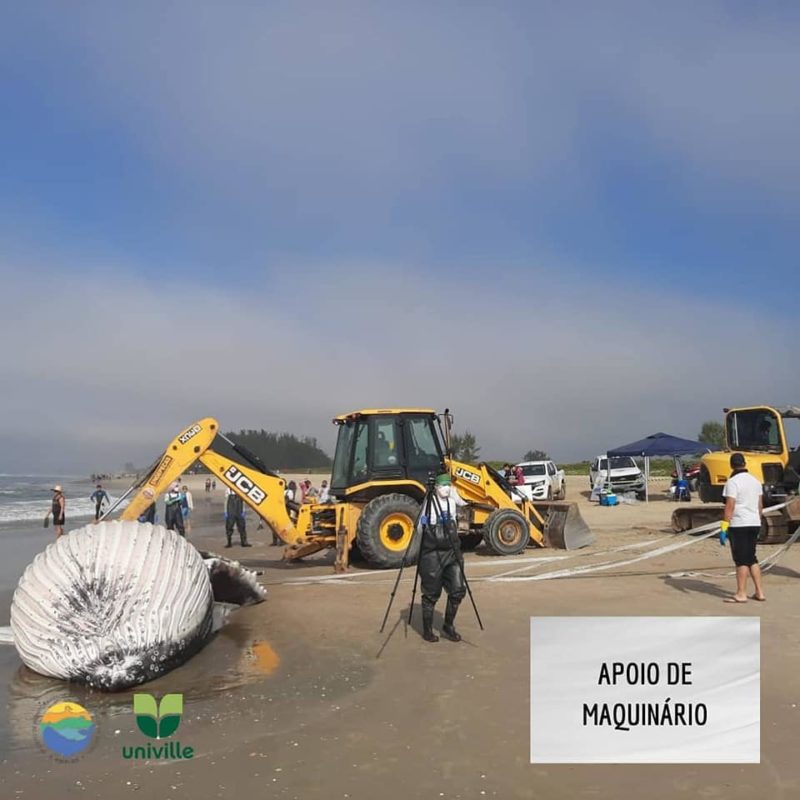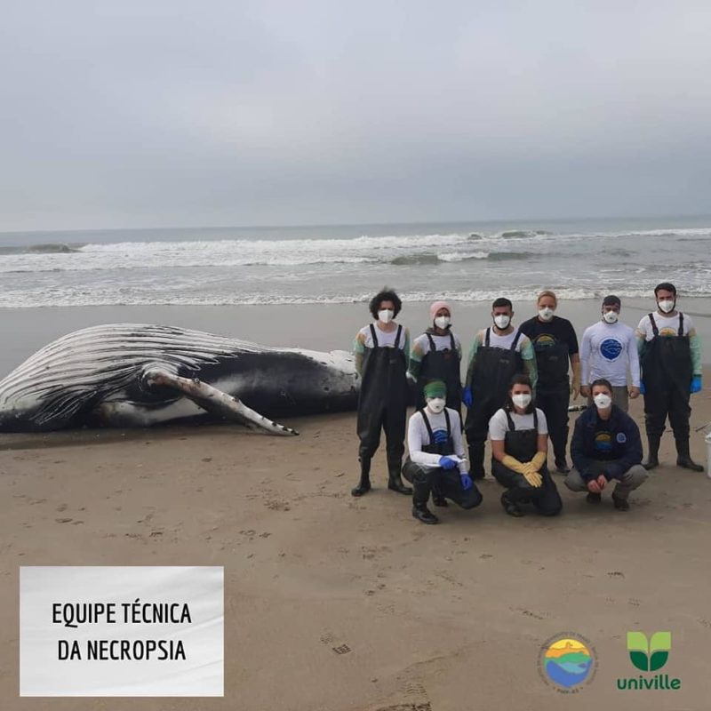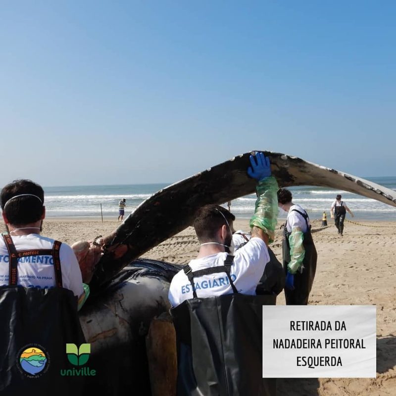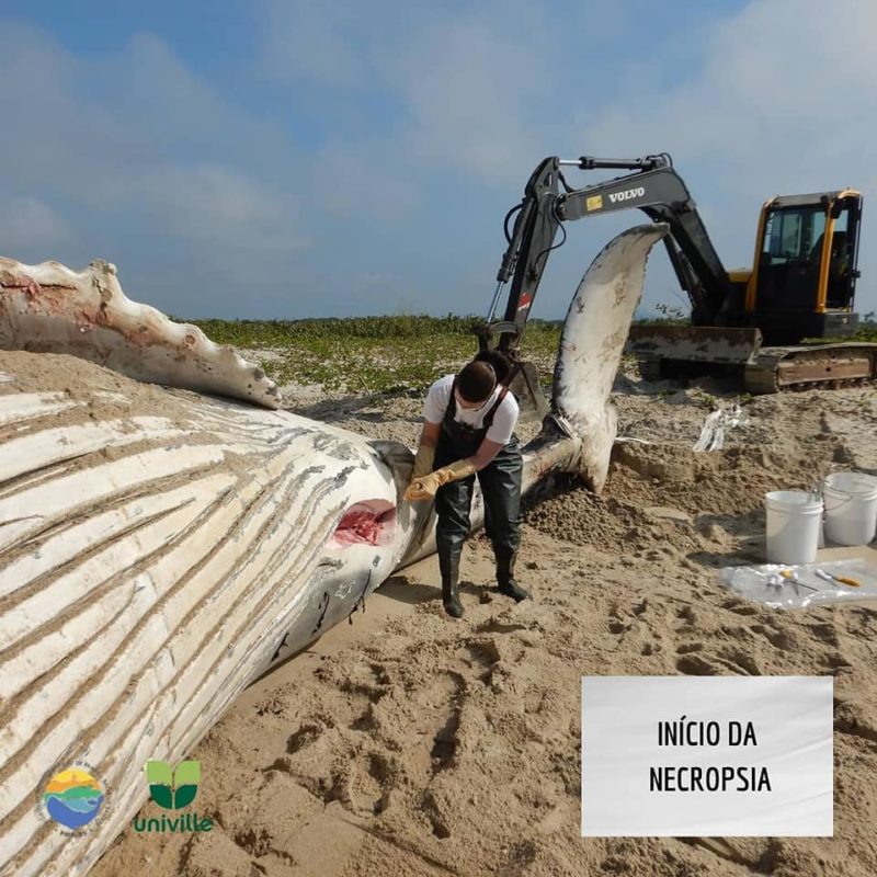 O Projeto de Monitoramento de Praias BS/Univille, que monitora os animais marinhos na região, foi acionado no sábado (10), quando o animal foi visto próximo à costa da Barra do Saí. Já no domingo (11), a equipe se deslocou até o local para necropsia.