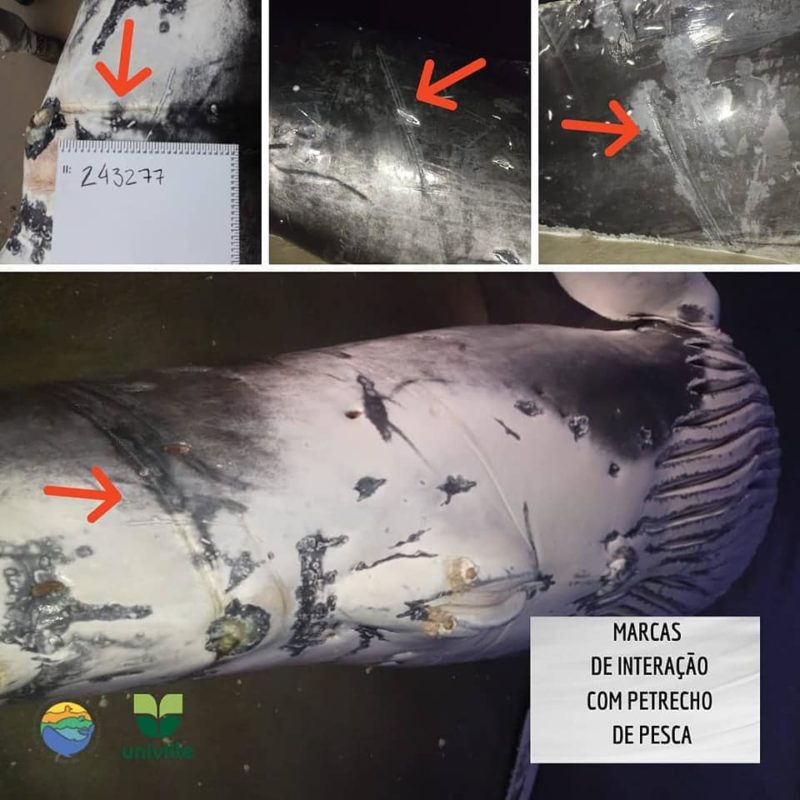 Segundo a médica veterinária Giulia Gaglianone Lemos, a baleia-jubarte de 8,81 m estava magra e com várias marcas de interação com utensílios de pesca pelo corpo, nadadeiras e mandíbula. Além disso, o animal também tinha lixo plástico no estômago.