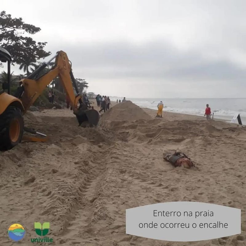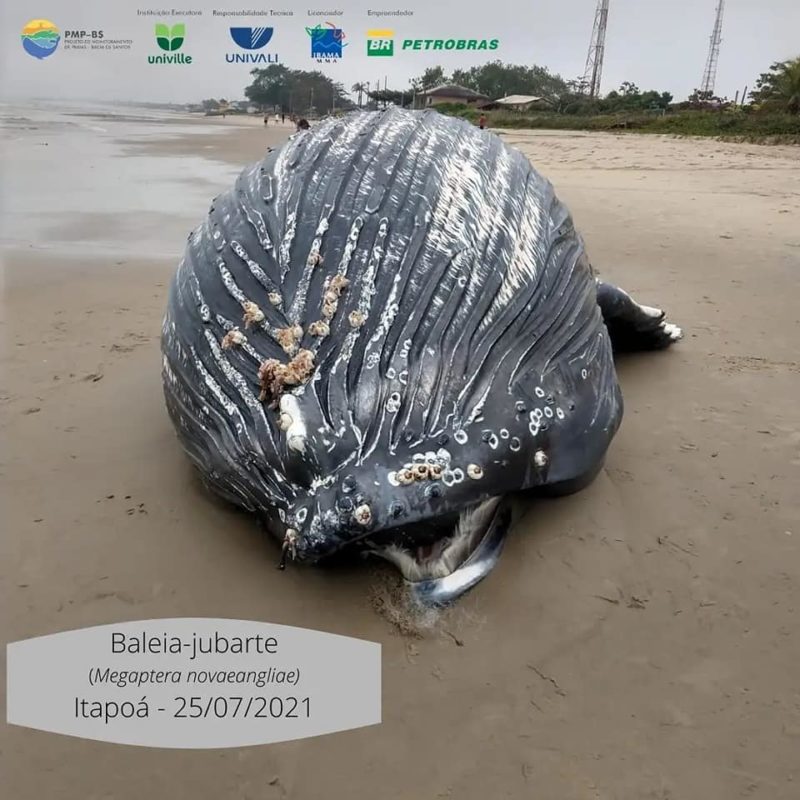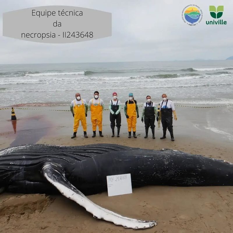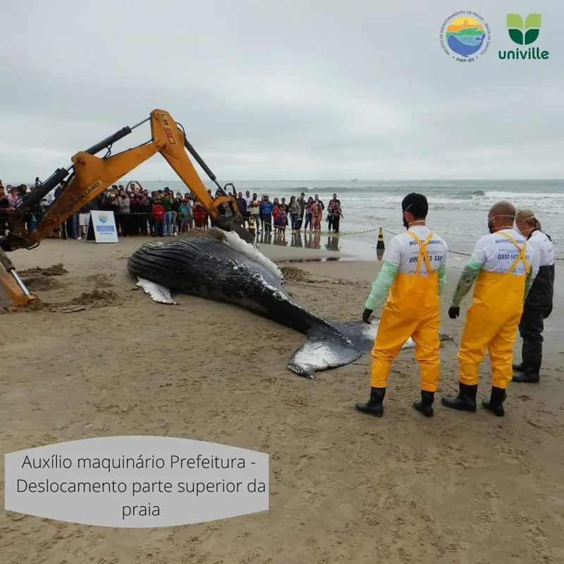 O Projeto de Monitoramento de Praias BS/Univille, que acompanha os animais marinhos na área, foi chamado para atender a ocorrência. Tratava-se de uma baleia-jubarte macho de 8 metros de comprimento, já em avançado estágio de decomposição.