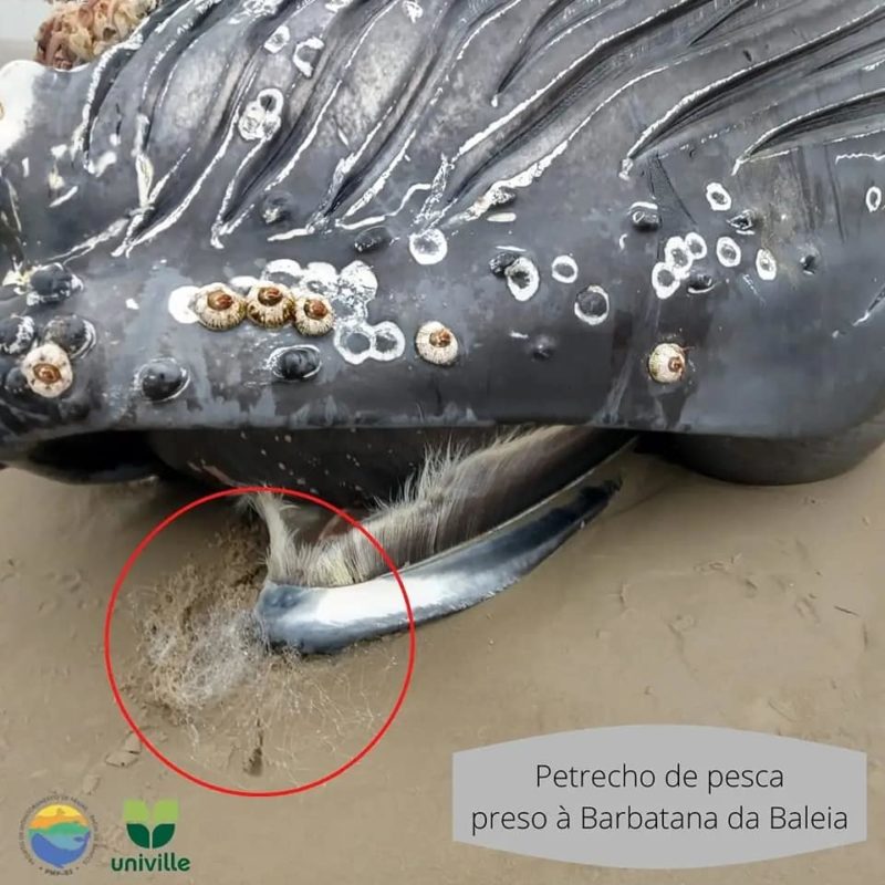 Há duas semanas, outro animal da mesma espécie foi encontrado morto na mesma cidade. Ele também tinha marcas de interação com rede de pesca, além de lixo no estômago.