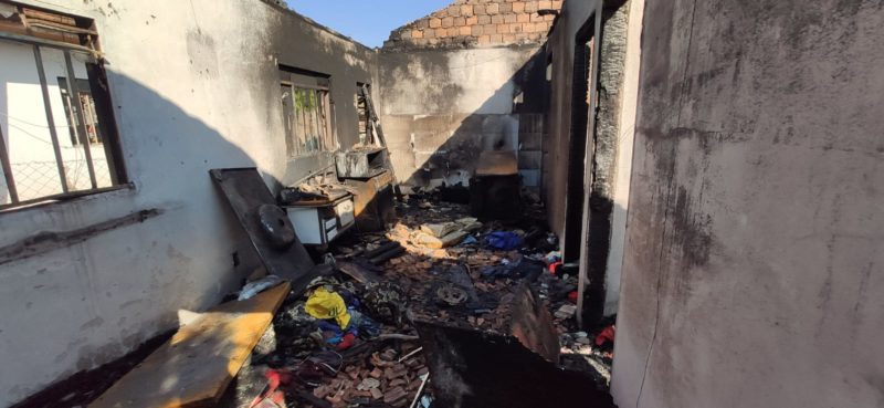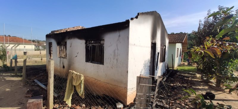 Casa fica na rua João Moreira, bairro Vista Alegre, em Rio Negrinho. Ficou completamente destruídas pelas chamas. – Foto: Foto: Fabiano Kutach/ Jornal A Gazeta/Divulgação ND)