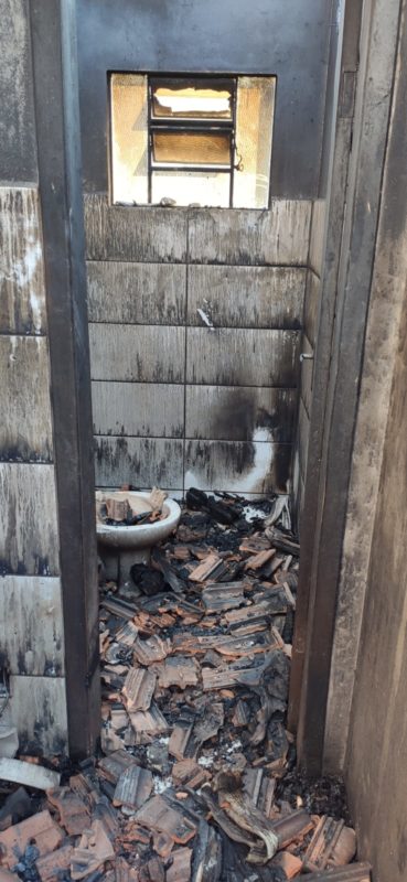 O fogo começou no quarto da frente da residência, onde havia um estoque de madeira. Cerca de 2 mil litros de água foram usados para combater as chamas, que já estavam destruindo a casa quando os bombeiros chegaram. – Foto: Fabiano Kutach/ Jornal A Gazeta/Divulgação ND