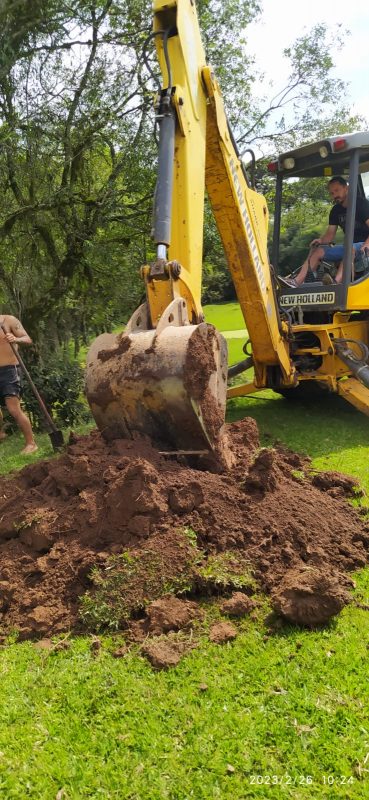 foi necessário a ajuda de uma máquina retroescavadeira, cedida de forma voluntária pela empresa Cerâmica Simette e um de seus proprietários, Silvano Simette.