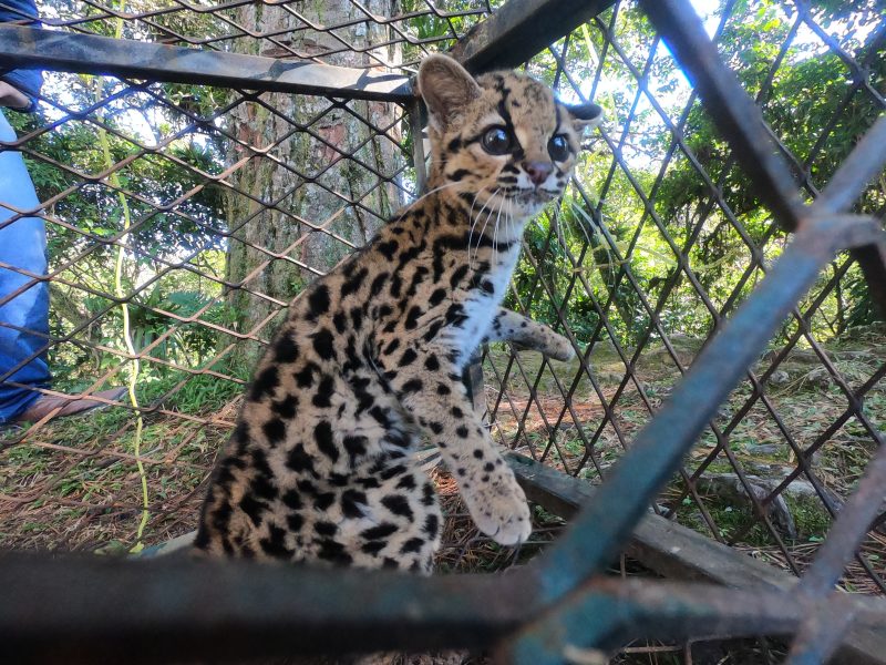 Esse fofinho aí é o gato-maracajá. Porém, não se engane com a fofura: ele é bonito, mas é selvagem também! A notícia triste é que ele é um animal ameaçado de extinção tanto por causa da caça quanto pela perda de habitat. “Ele precisa de grande espaço, de uma floresta protegida”, destaca Christian – Foto: Fujama/Divulgação