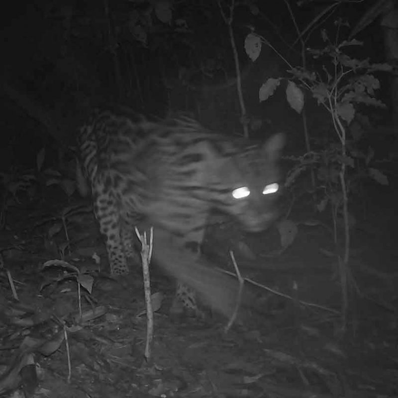 Olha quem foi pega no flagra passeando pela mata! A jaguatirica é mais um “gatinho” com a existência ameaçada pela região Norte de SC. Christian explica que a caça pode ocorrer tanto por causa da pele dos animais, que é cobiçada, quanto pela chamada caça de retaliação, que acontece quando os bichos são mortos por terem matado algum animal doméstico, como as galinhas – Foto: Fujama/Divulgação