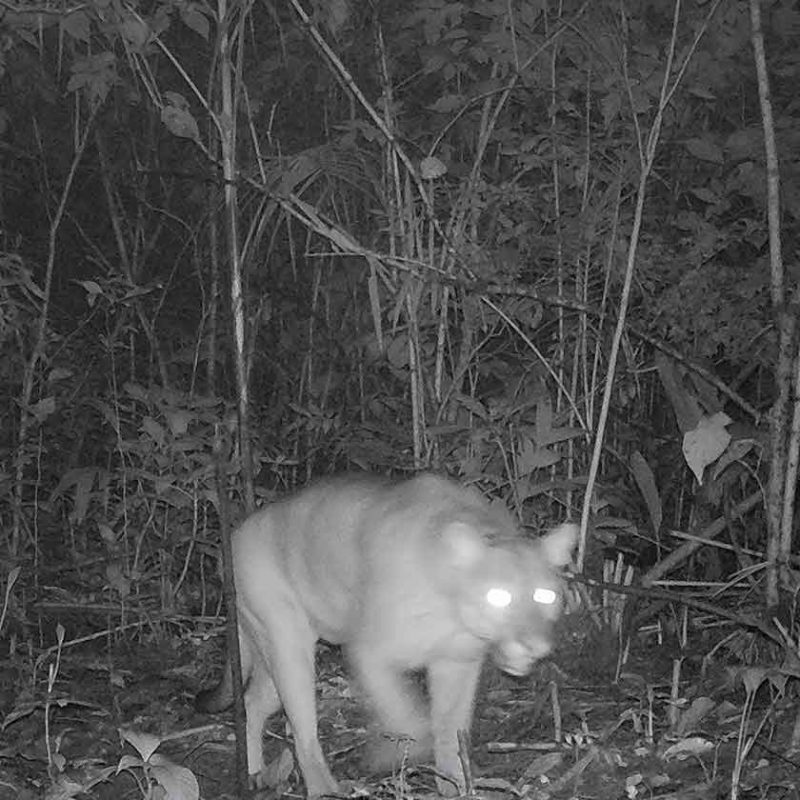 O puma, também conhecido como onça-parda, é outro felino ameaçado de extinção. Nessa foto, um deles foi flagrado pelas lentes da Fujama em uma rara aparição pela região. A perda de habitat e a caça também são motivos para a espécie estar ameaçada – Foto: Fujama/Divulgação