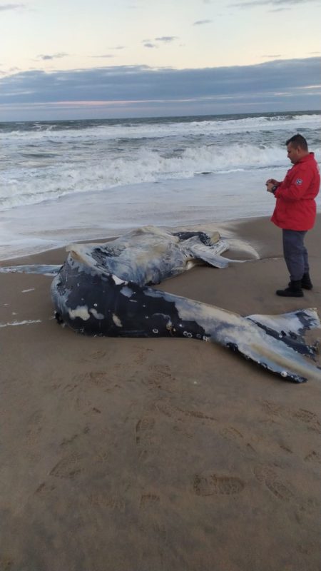 No início da tarde deste domingo (20), o Projeto de Monitoramento de Praias da Bacia de Santos (PMP-BS/Univille) registrou um filhote de baleia-jubarte (Megaptera novaeangliae) morto na praia de Balneário Barra do Sul, Litoral Norte de Santa Catarina.