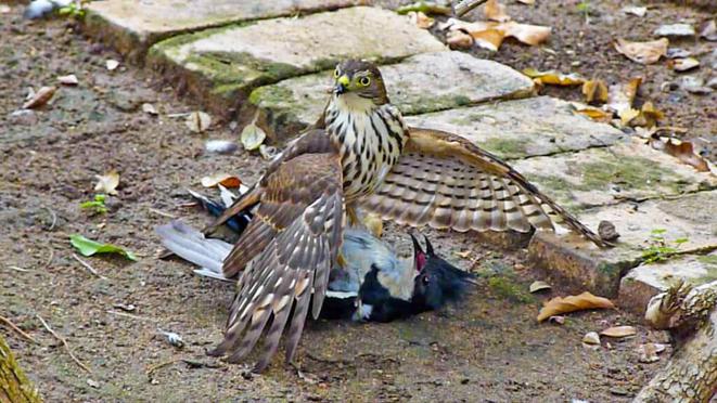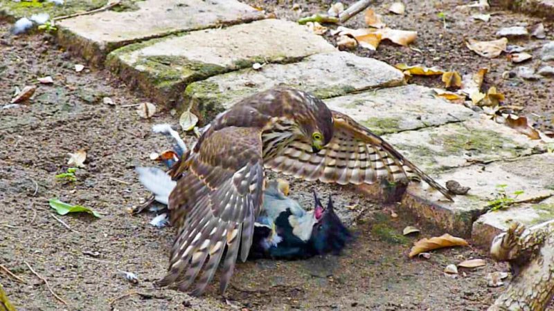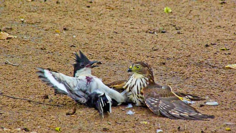 “Esta foi a primeira vez que vi um gavião tentando matar alguma coisa. Eu estava trabalhando no local do piquenique, como de costume, quando ouvi um barulho vindo de perto. Comecei a olhar em volta e de repente vi o Gavião estrangulando um cuco jacobino”, lembra. - 4 de 5