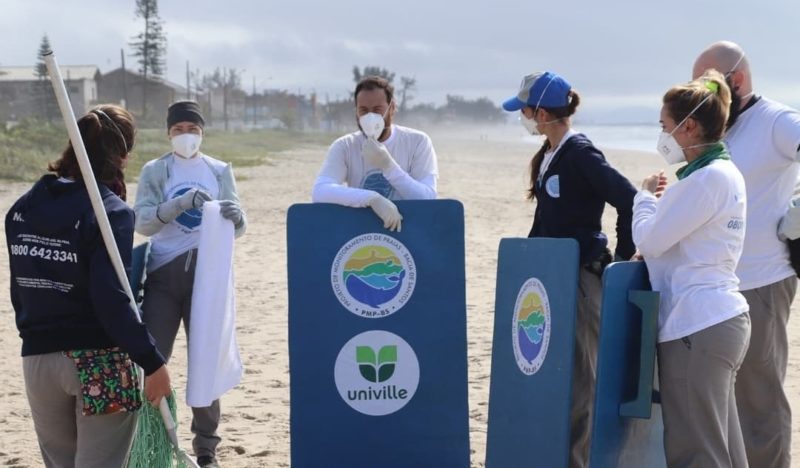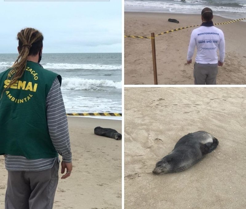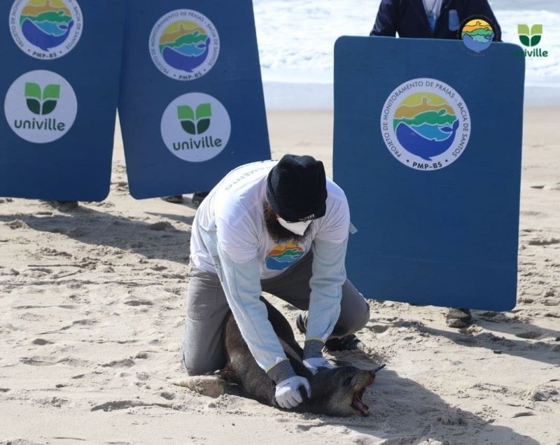Se alguém encontrar algum animal marinho morto ou debilitado deve ligar para 0800 642 3341 / (47) 3471 3816 (base) / (47) 99212 9218 (whatsapp).