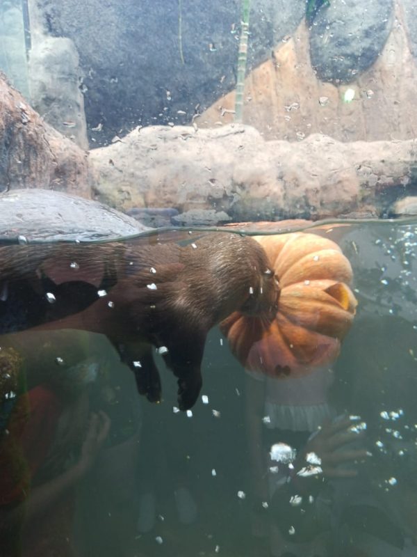 No recinto das lontras, por exemplo, a comida será colocada dentro de uma abóbora; as lontras usam o legume para brincar na água e até podem comer. – Foto: Divulgação/Oceanic Aquarium Balneário Camboriú/ND - 5 de 6
