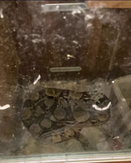 Porém, ao entrar dentro da casa, se deparou com um depósito de lixo, como copos, roupas, garrafas velhas, cartas, jornais e vários outros pedaços de lixo. Além disso, entre as quatro cobras encontradas sendo que duas já estavam mortas.