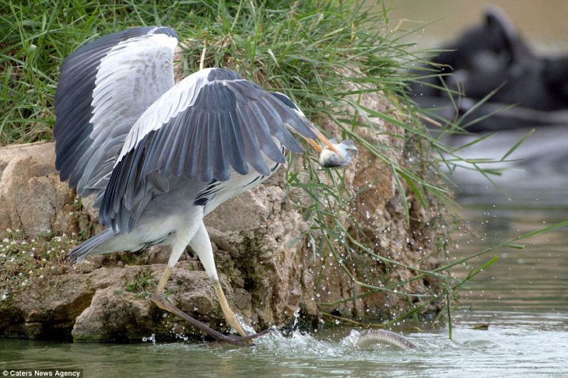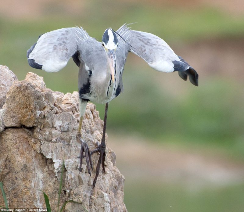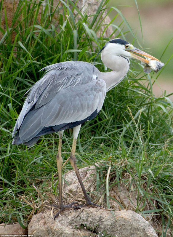 Por fim: Orgulhosa de seu feito, a garça devorou seu jantar de peixe em uma rocha quase em plena vista do fotógrafo, que captou as fotos com detalhes impressionantes – Foto: Sunny Inaganti/Caters News/ND - 9 de 10