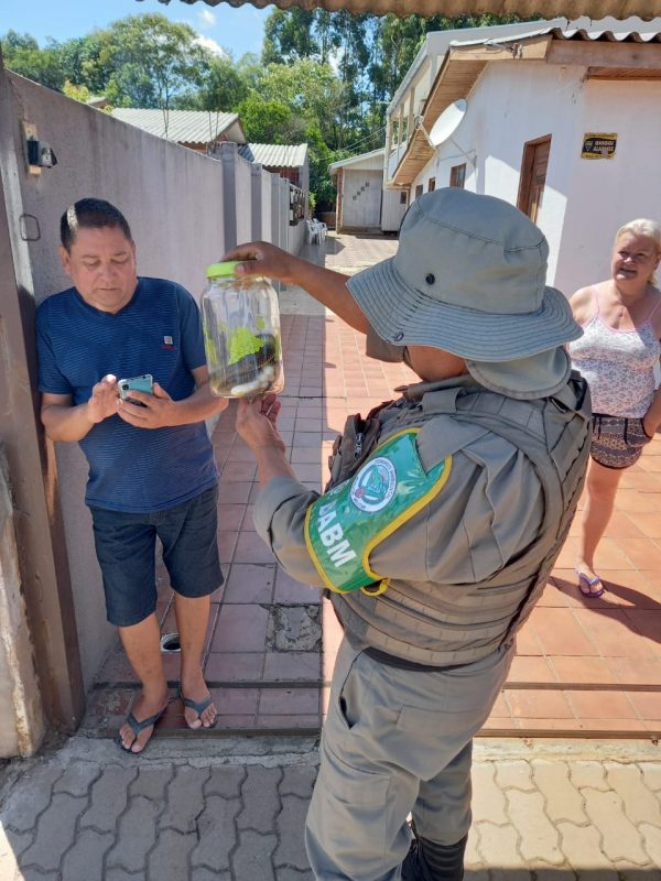 No dia seguinte, na quarta (22), a cobra proporcionou uma surpresa ainda maior aos moradores: ela desovou sete ovos no recipiente onde foi colocada para o transporte. Os policiais do 3º BBM (Batalhão Ambiental da Brigada Militar) realizaram o resgate do animal e o levaram para o hospital veterinário. – Foto: Ademar de Mattos/Arquivo Pessoal/ND - 3 de 5
