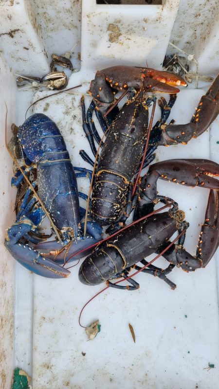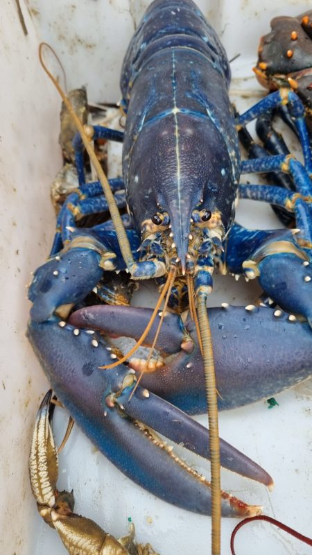 O pescador Ricky Greenhowe, de 47 anos, capturou pelas redes de seu barco uma rara lagosta azul na costa da Escócia, em Aberdeen, na última quinta-feira (2). – Reprodução/Ricky Greenhowe - 2 de 4