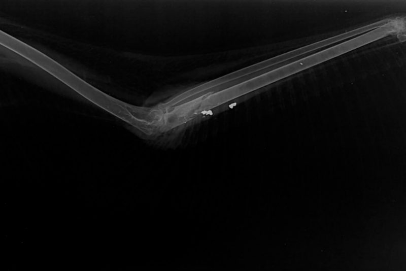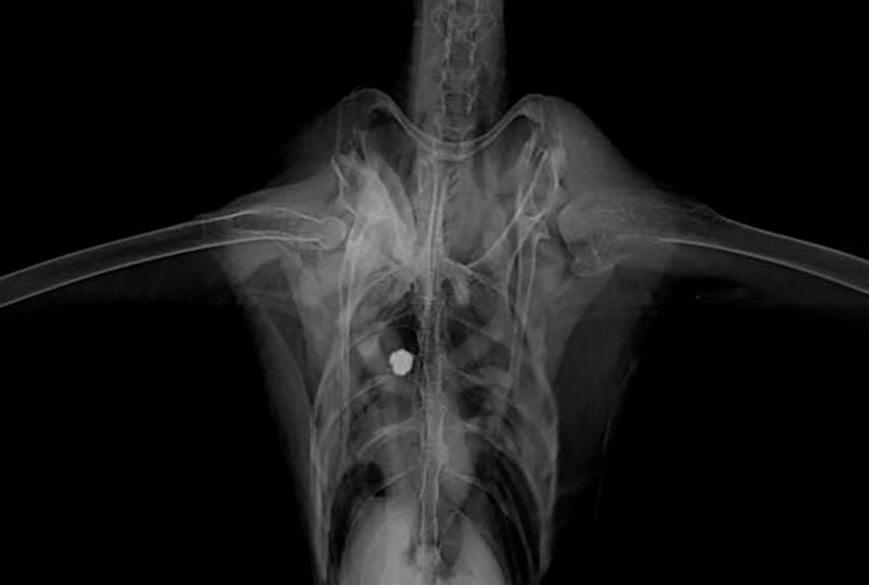 Após fazer um exame de raio-x, foi constatado que a ave não conseguia voar por conta da presença de um projétil alojado na musculatura peitoral – Foto: Divulgação/R3 Animal/ND - 4 de 8