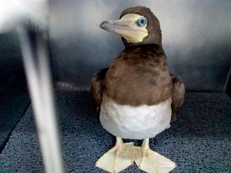 Três Atobás-pardos, encontrados em momentos diferentes precisaram passar por procedimento cirúrgico, na última sexta-feira (13), para a retirada do “chumbinho”. No entanto, apenas uma das aves (foto) sobreviveu após a cirurgia e está em observação – Foto: Divulgação/R3 Animal/ND - 2 de 8