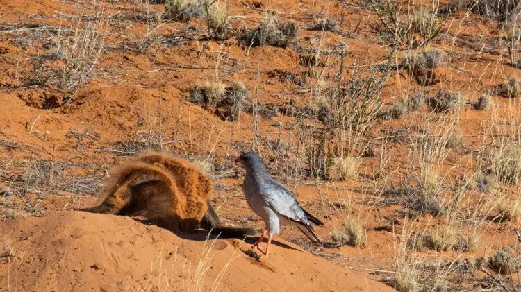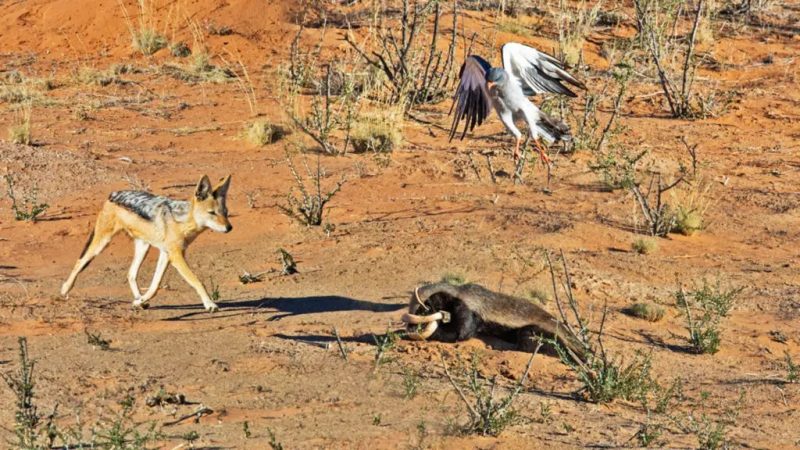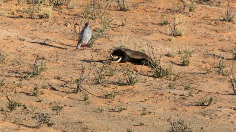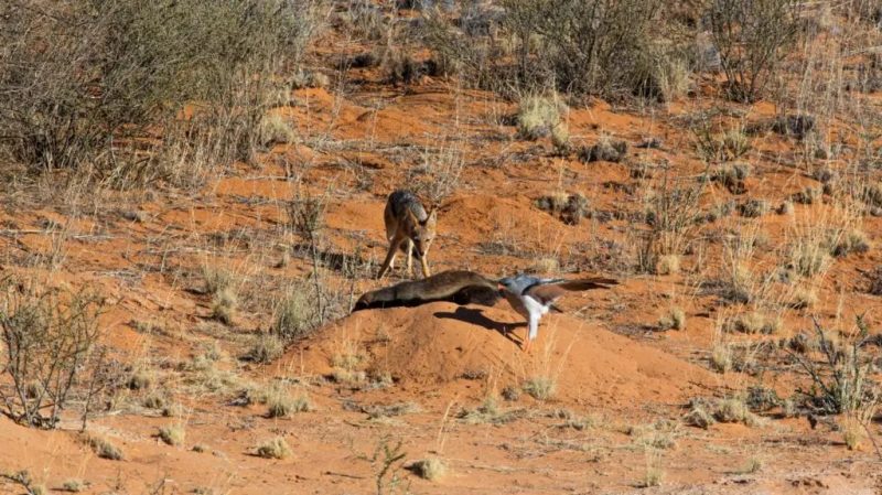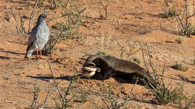 Um casal filmou um texugo-de-mel caçando duas cobras enquanto um falcão e um chacal esperavam pelos restos das serpentes. – Foto: Reprodução/Latest Sightings/ND - 2 de 7