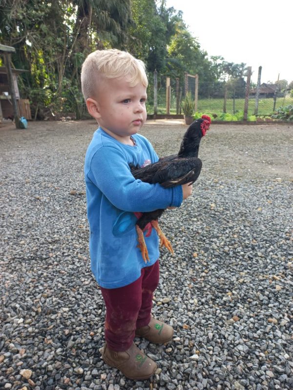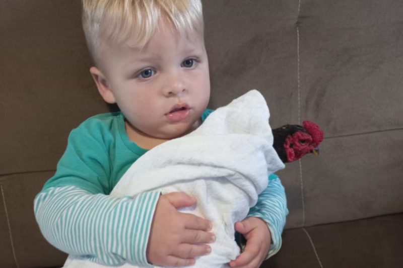 A mãe de Heitor, Karoline May Borges, conta que o marido cria raças de galo e acabou ganhando o animal de um amigo. “Foi amor à primeira vista, o Heitor se apaixonou por ele. Por um lado, o Heitor sempre amou muito os animais e a natureza e, de outro, o galo tão mansinho possibilitou o maior vínculo afetivo”, conta.