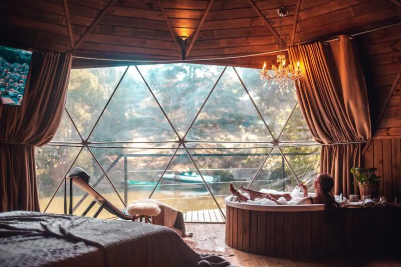 Domo doméstico, em Urubici: possui hidromassagem e aceita 2 hóspedes – Foto: Airbnb/Divulgação - 24 de 24