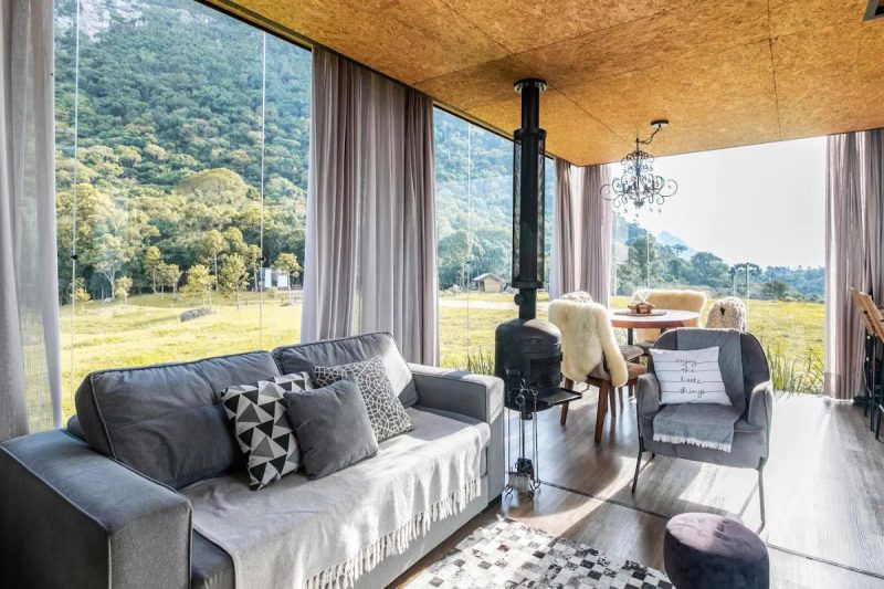 Casa de Vidro: “Passamos dias incríveis na casa de vidro. Um lugar para recarregar as energias. Casa com todas as comodidades e decorada com bom gosto. Perfeito para desligar de tudo”, dizia uma avaliação. – Foto: Airbnb/Divulgação - 17 de 20