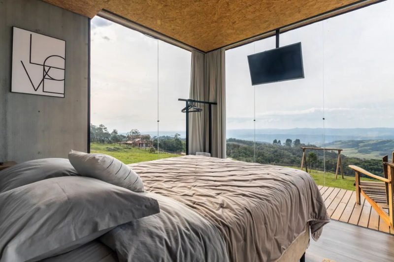 Casa de Vidro: Localizada em Alfredo Wagner, a casa tem um estilo minimalista. – Foto: Airbnb/Divulgação - 14 de 20
