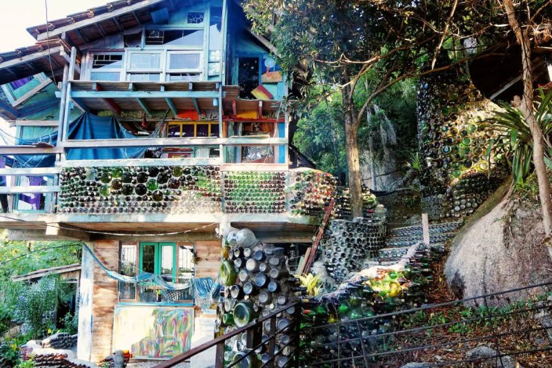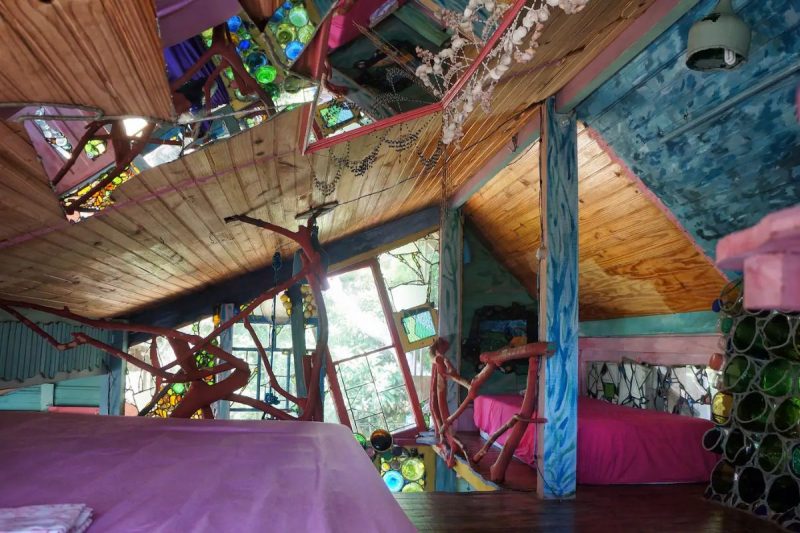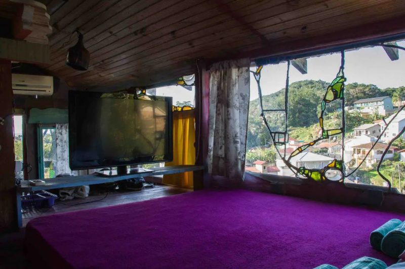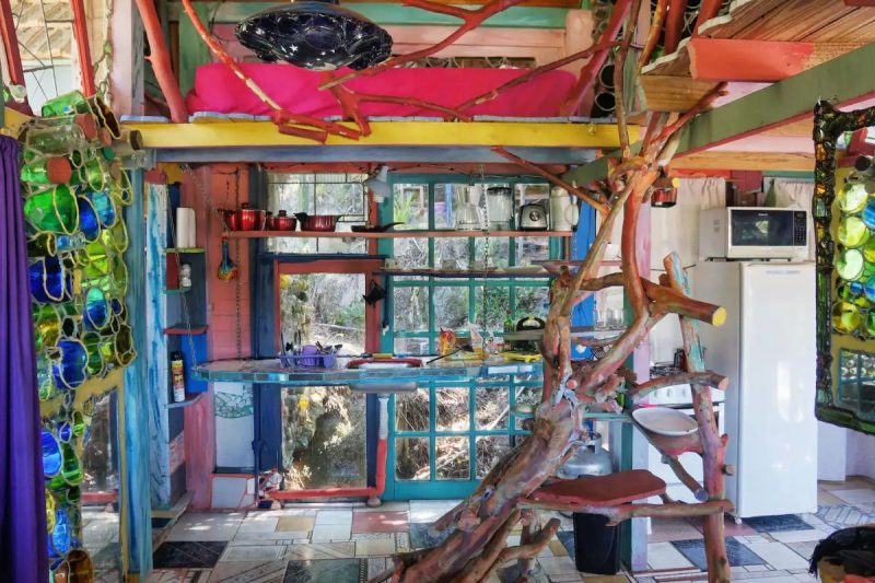 Cabana Floripa: Localizada em Florianópolis, a casa é bem colorida. Cheia de pedaços de vidros, parece uma obra de arte. – Foto: Airbnb/Divulgação - 6 de 20