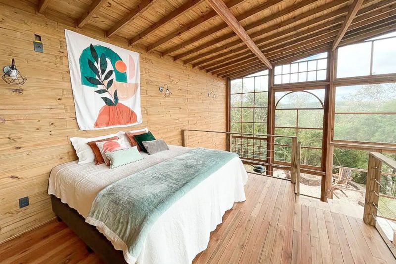 Cabana Floripa: “Amamos o tempo que estivemos na casa arte. Uma experiência única. Contato com a natureza, muitas árvores frutíferas, conseguimos ver lagartos, coati, macacos, pássaros”, comentou uma avaliadora. – Foto: Airbnb/Divulgação - 9 de 20