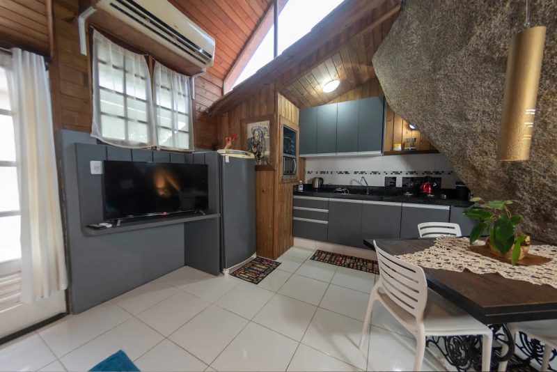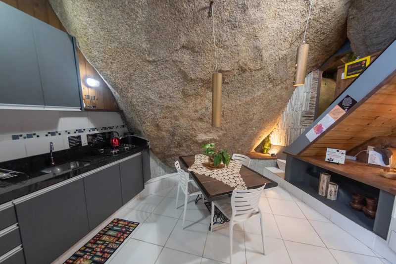 Já pensou se hospedar em meio as pedras e se sentir dentro de uma gruta? Uma família de Florianópolis aproveitar o espaço que tinha para fazer uma casa na pedra e hospedar aventureiros de plantão. Aluguel está disponível na plataforma Airbnb. Confira mais detalhes do local: