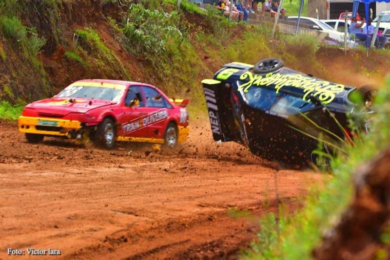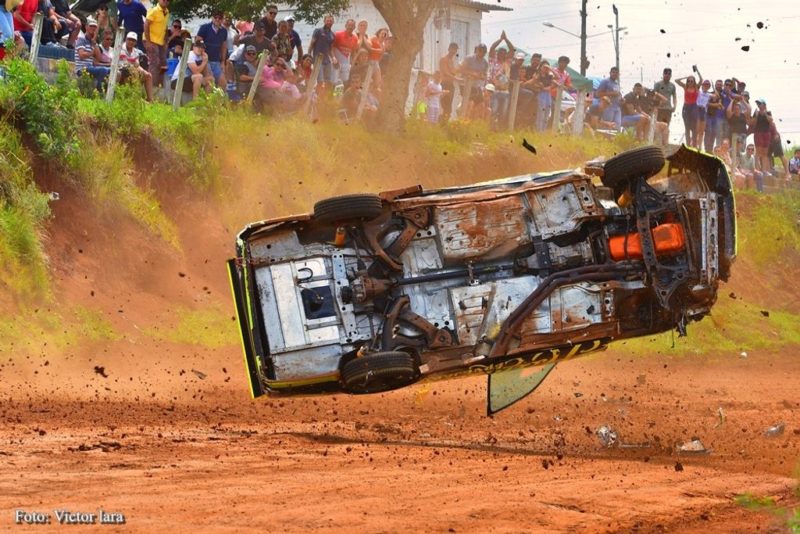 O carro ficou com muitos danos. O público que acompanhava a competição ficou impactado com a cena. — Foto: Victor Lara/Divulgação/ND - 7 de 8