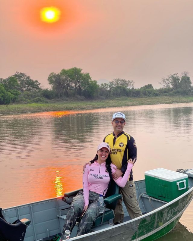 Graciele e Zezé Di Camargo em uma pescaria. O casal foi brindado pelo pôr-do-sol. – Foto: Arquivo pessoal/Divulgação ND