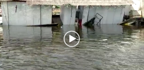6 das 14 barracas tombaram e ficaram encostadas com o rio em Balneário Barra da Sul- Foto: Maikon Costa, NDTV Record Joinville