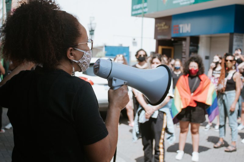 No megafone aberto ao público, cinco mulheres compartilharam relatos pessoais e palavras de luta pelos direitos femininos. – Foto: Vivianne Melo - 5 de 8