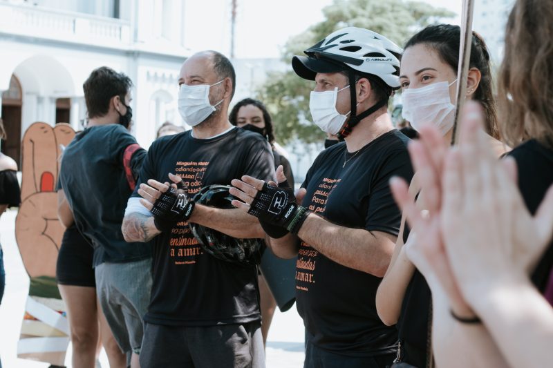 Um manifesto pelo “caso Mariana Ferrer” reuniu cerca de 100 pessoas, em Itajaí. O ato foi realizado na tarde de domingo (8) na praça em frente a Igreja Matriz. – Foto: Vivianne Melo - 2 de 8