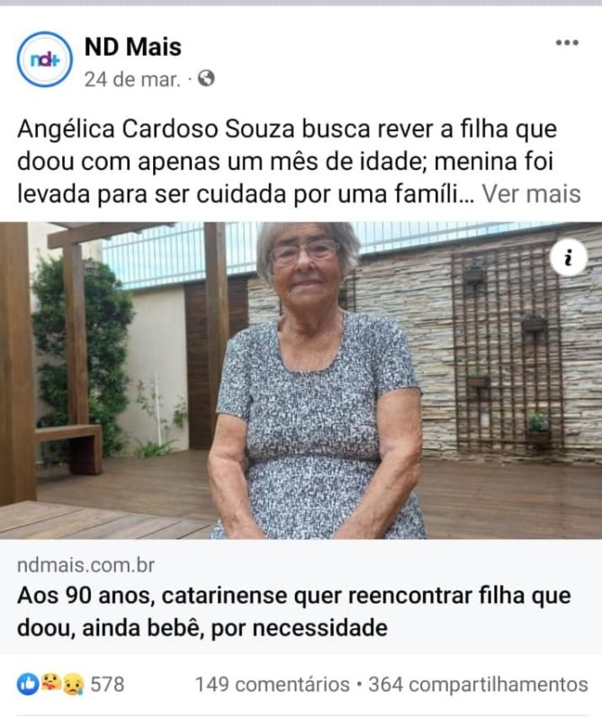 Foi aí que entrou o Portal ND+, que publicou uma reportagem sobre Angélica Cardoso Souza que doou uma filha por necessidade e até hoje tenta reencontrá-la. A história comoveu e teve grande repercussão na internet até chegar na vida de Débora.