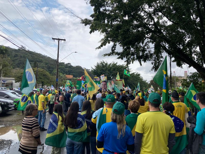 Sipioni Allievi, do Movimento Direita Joinville, ressaltou o objetivo do evento. “É a nossa luta pela liberdade de forma ordeira e organizada. Estamos comemorando 200 anos de Independência e prestando apoio ao presidente”, disse. Depois do ato, os manifestantes pretendem seguir até a sede do 62º Batalhão de Infantaria.