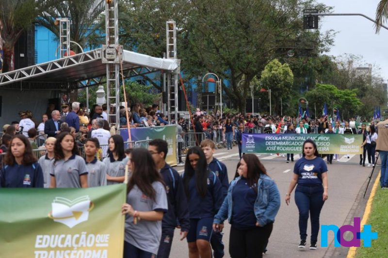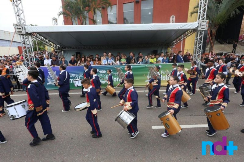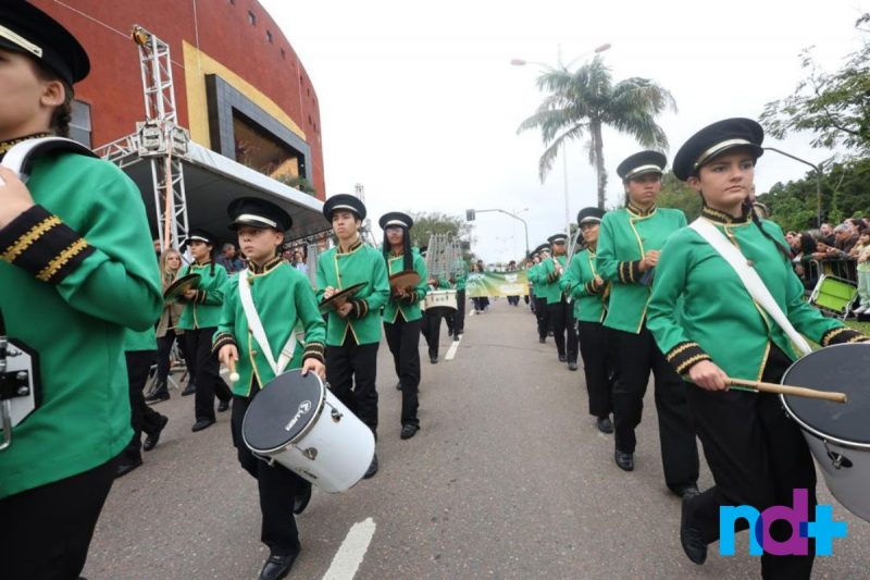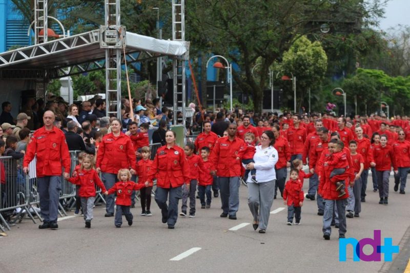 Também participaram alunos de 22 escolas municipais e estaduais, bem como estudantes de quatro escolas particulares de Joinville. Além do desfile na rua, muita música com as bandas do Batalhão, dos bombeiros voluntários e fanfarras escolares.