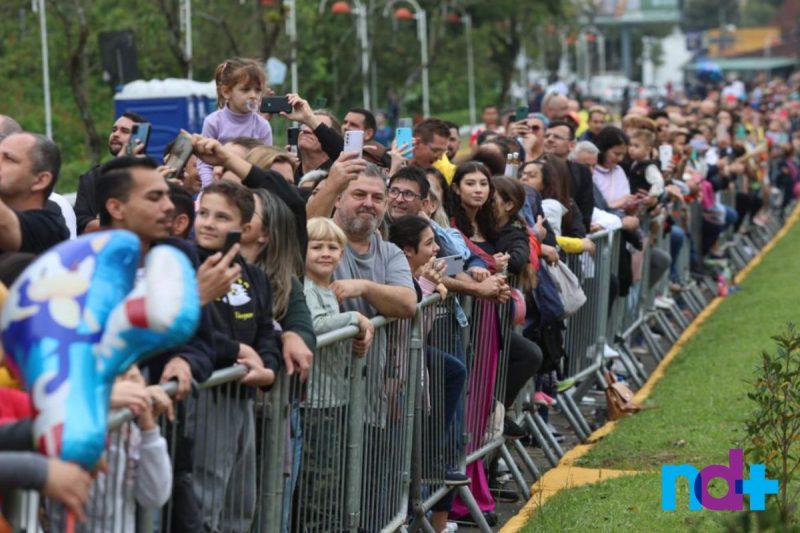 Mesmo com o tempo nublado e possibilidade de chuva, o tradicional desfile de 7 de setembro foi mais uma vez um sucesso em Joinville, no Norte de Santa Catarina. Para celebrar a Independência do Brasil, 42 grupos desfilaram na avenida José Vieira, a Beira Rio, que reuniu milhares de pessoas, entre participantes do desfile e as que foram prestigiar o evento.