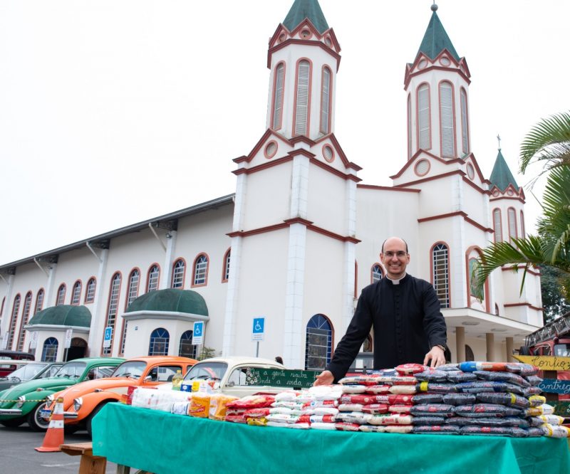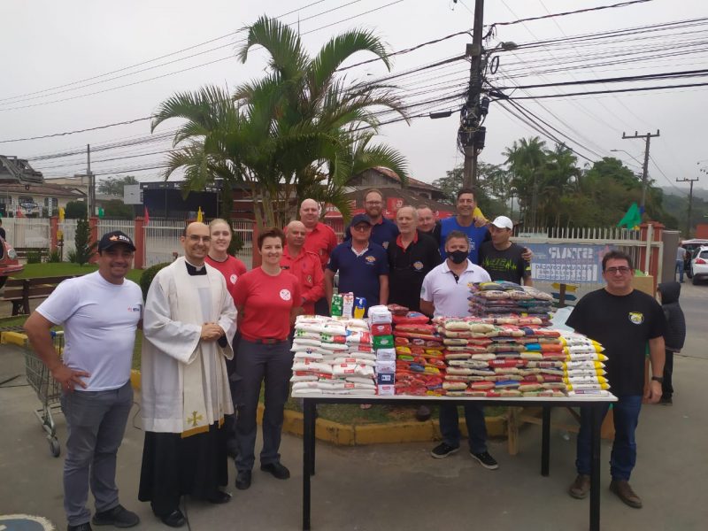 O evento contou, além do apoio da comunidade, com o grupo Antigos de Garagem, Bombeiros Voluntários de Joinville e demais parceiros. Cada participante contribui doando 1 kg de alimento. Foram arrecadados 458 kg, que serão distribuídos para as famílias carentes da paróquia.