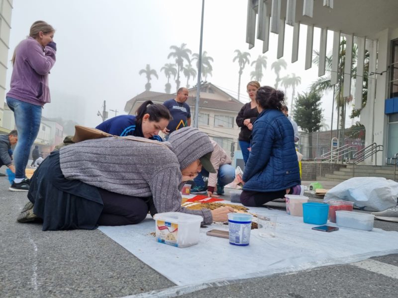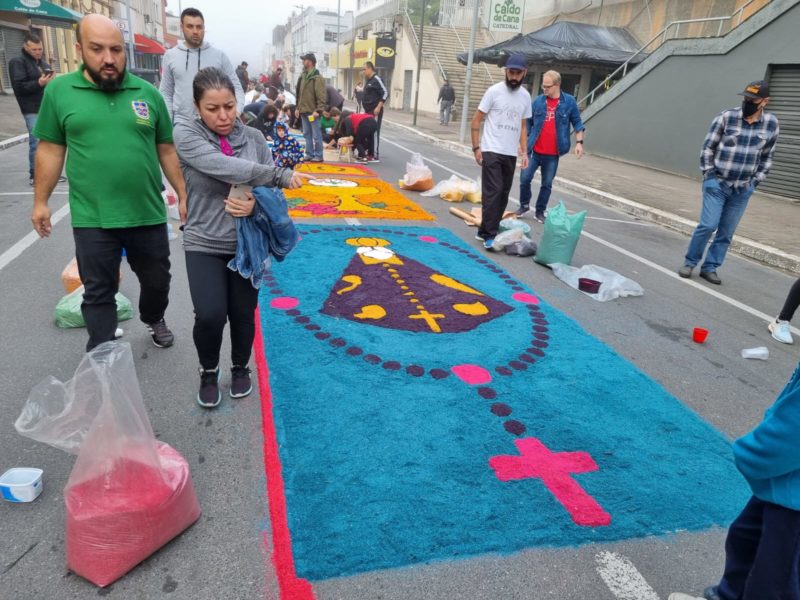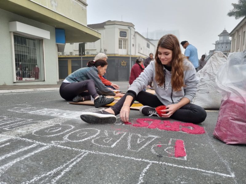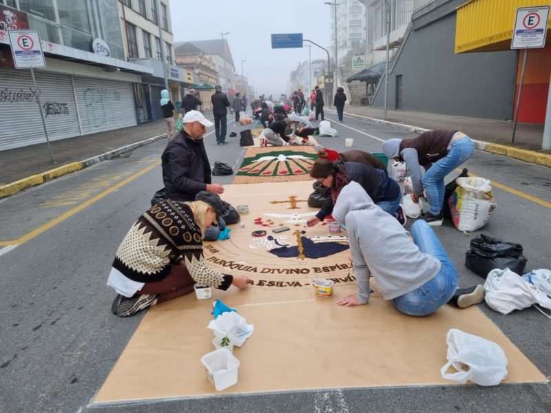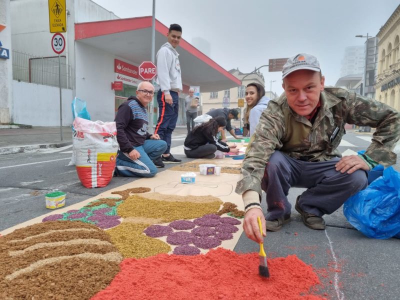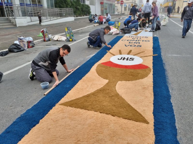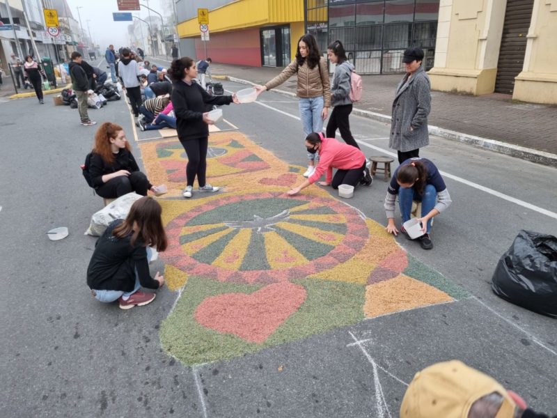 Tapetes colorem ruas do Centro de Joinville no feriado de Corpus Christi – Foto: Kelly Borges/NDTV