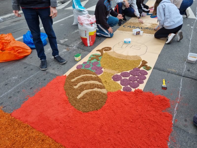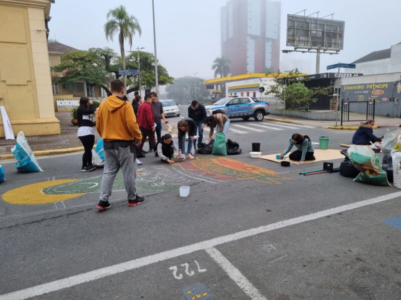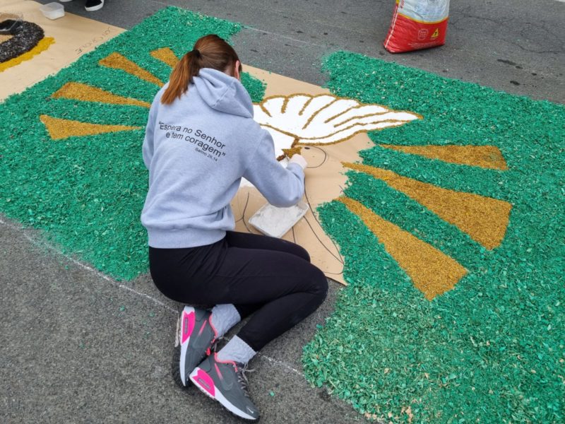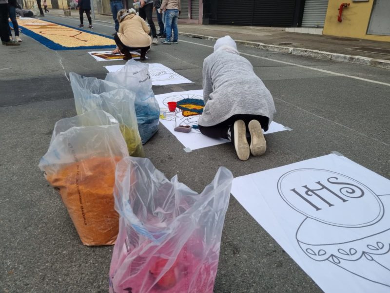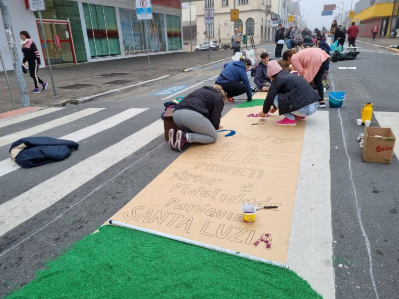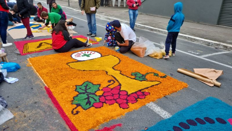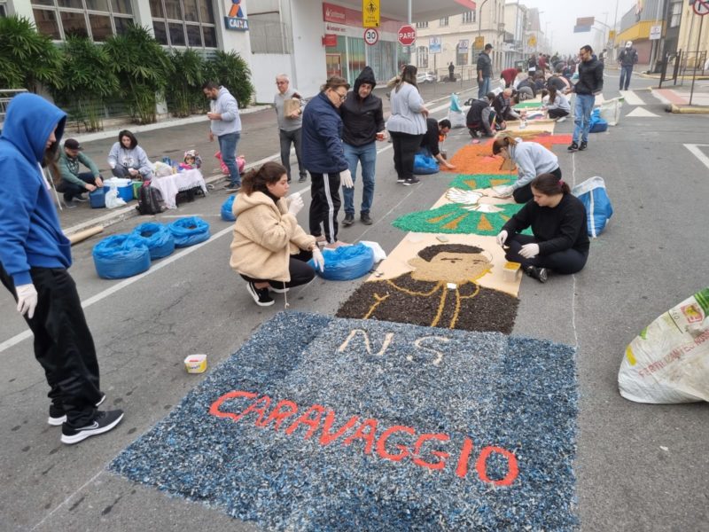 Tapetes colorem ruas do Centro de Joinville no feriado de Corpus Christi – Foto: Kelly Borges/NDTV