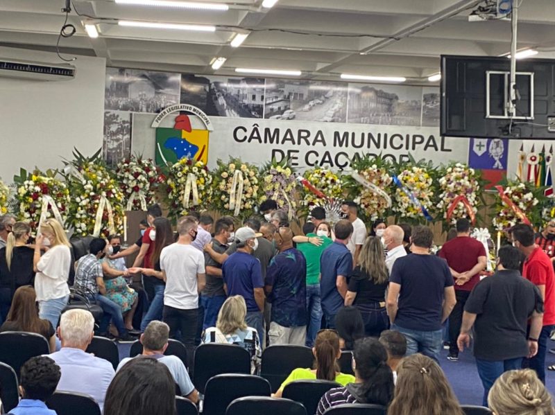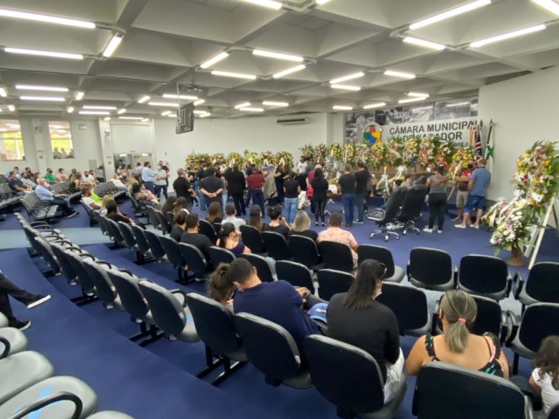 Velório do vereador Ricardo de Moraes Barbosa, de 46 anos, e de Deyvid Fernandes acontece na manhã deste domingo (16) na Câmara de Vereadores de Caçador. Sepultamento será no cemitério Municipal, após as 15h – Foto: Lorenzo Franchi/ND - 2 de 7