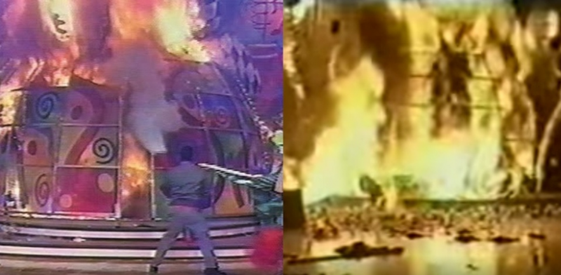 No início do ano, em janeiro, um incêndio tomou conta do cenário do programa da Xuxa durante as gravações, e mais de 20 pessoas ficaram feridas – Foto: Youtube/Reprodução - 4 de 12