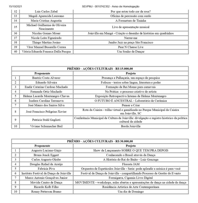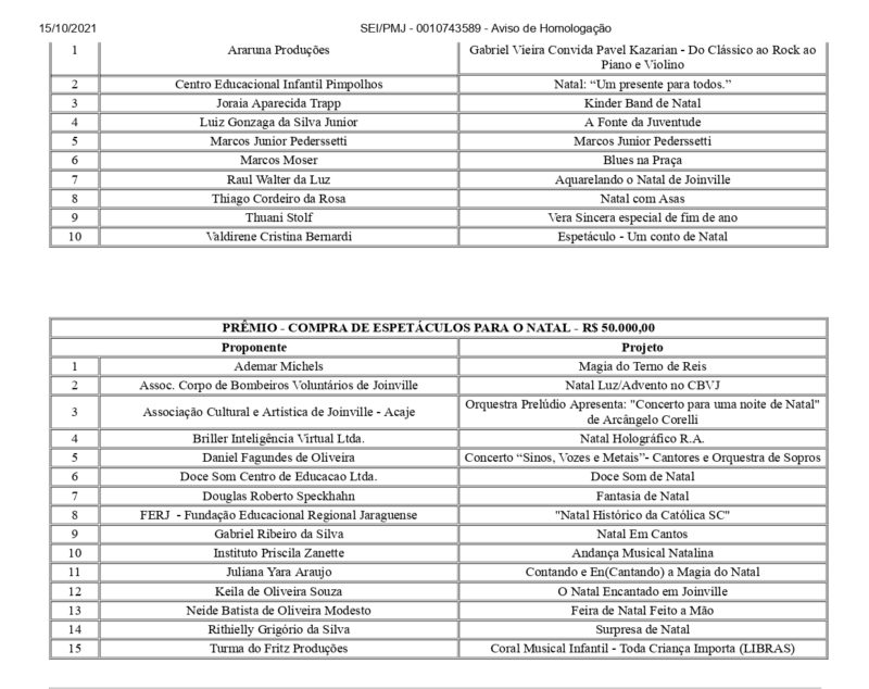 “Nós temos um resultado que a cidade inteira vai se beneficiar que é a programação cultural intensa que Joinville vai viver nos próximos meses. Nós teremos quase 200 projetos que vão entregar para a cidade muita programação cultural e artísticas, eventos, oficinas, formações, atividades que vão, sem dúvida, elevar o nome de Joinville e proporcionar para a população um momento de apreciação de tudo aquilo que Joinville produz de bom na área da arte e da cultura”, conclui.