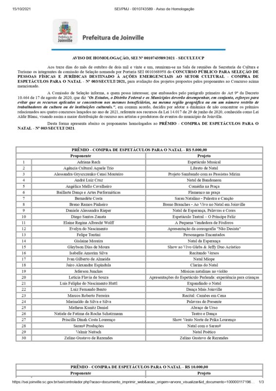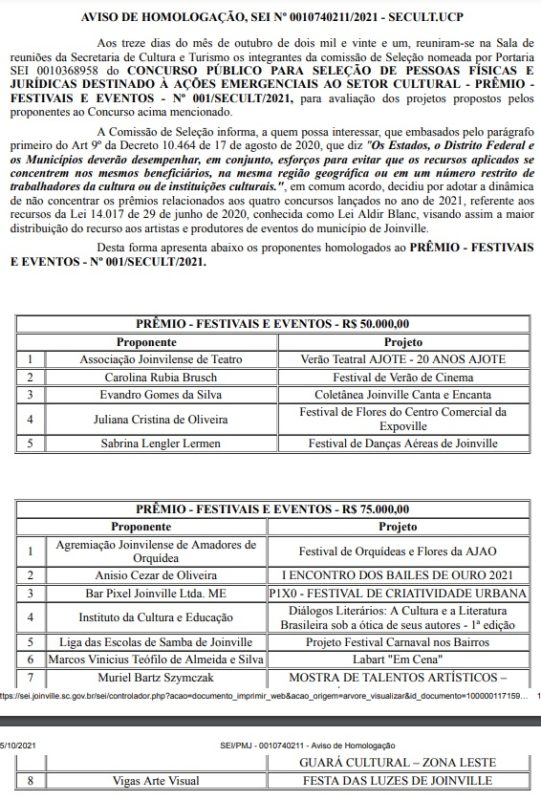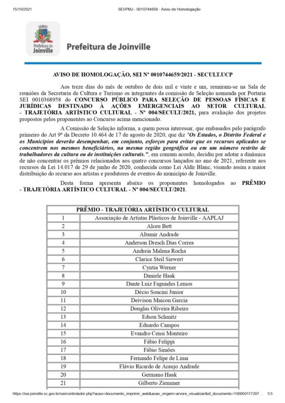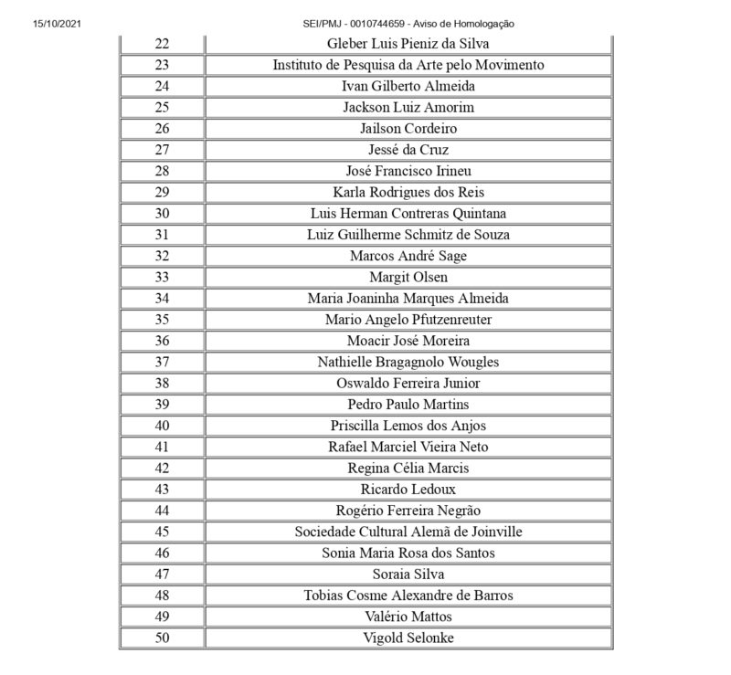 A relação completa também está disponível no site da prefeitura de Joinville (bit.ly/LeiAldirBlanc2021).