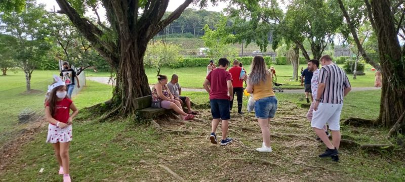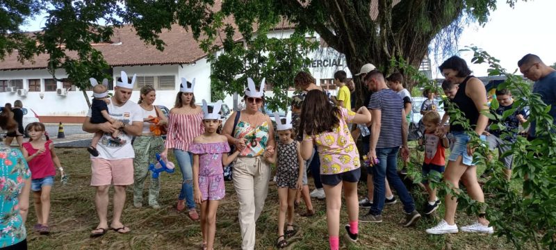Os ovos escondidos pelo Parque Expoville eram de plástico, depois de encontrados eles eram trocados por deliciosos ovos de chocolate que fizeram a alegria da criançada.